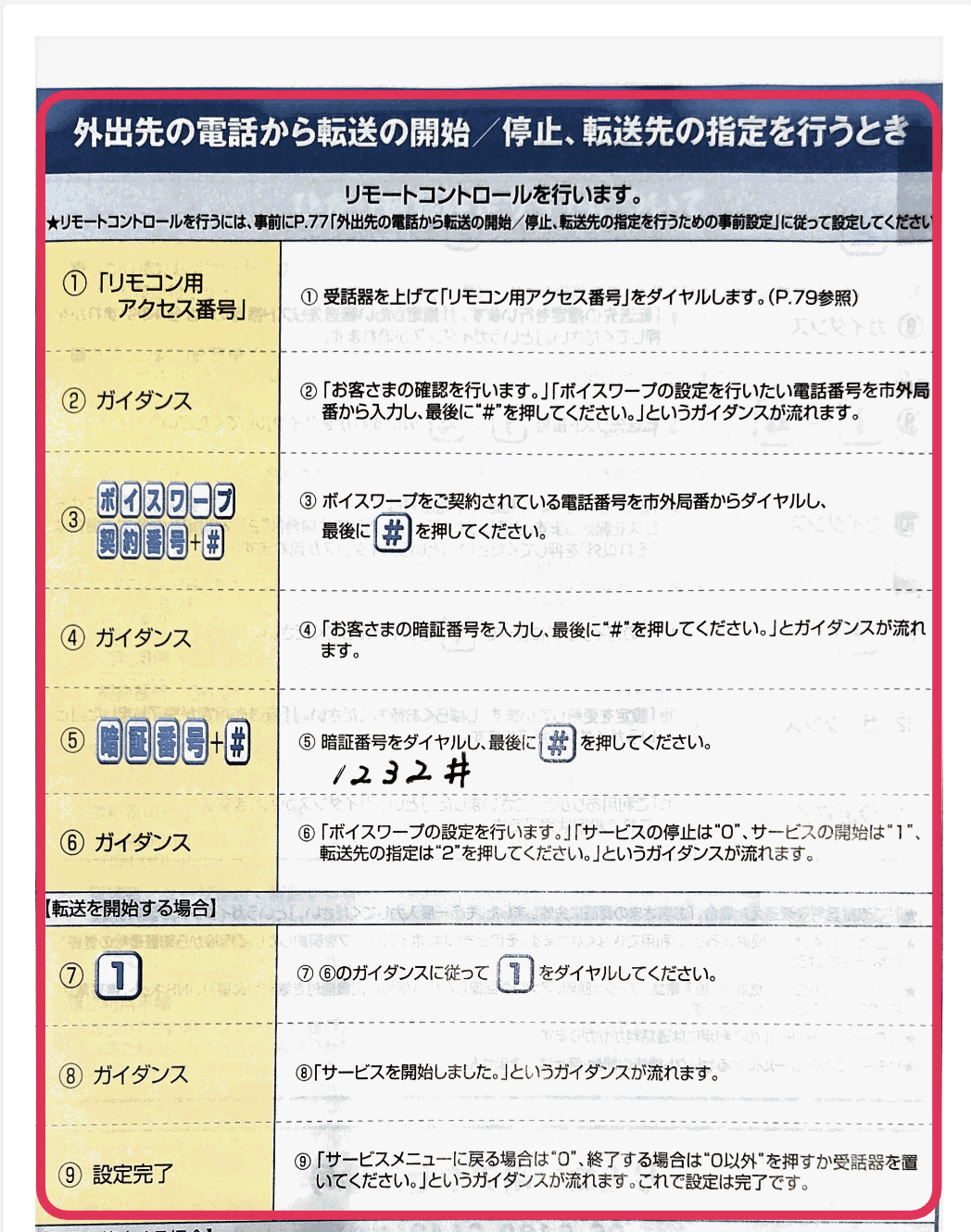 ひかり電話転送・ボイスワープ設定/リモコン用アクセス番号