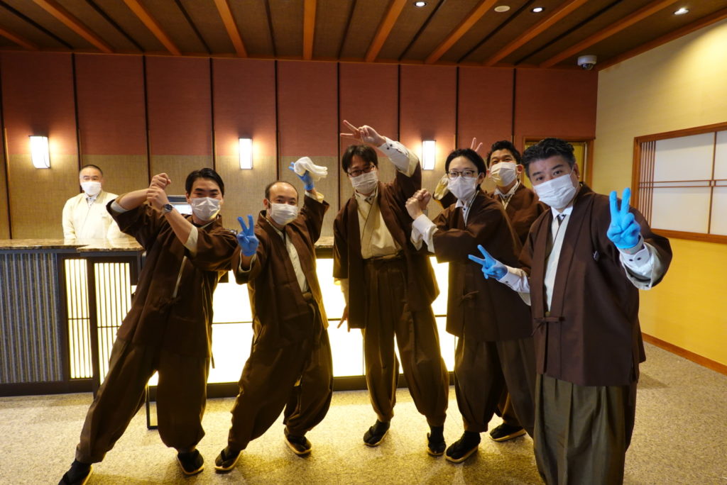 このように望水男性フロントスタッフはハッピをきて朝から気合をいれていきます!!