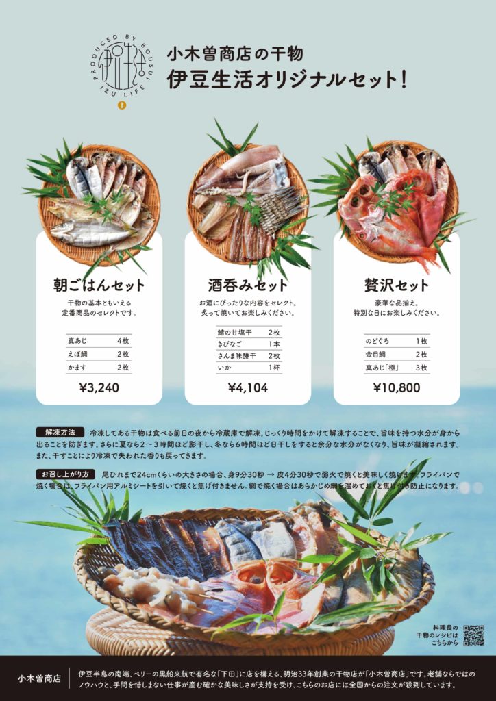 朝食の干物は金目の味噌漬け以外全てこちらの「小木曽商店」の干物です。本店は下田にあります。