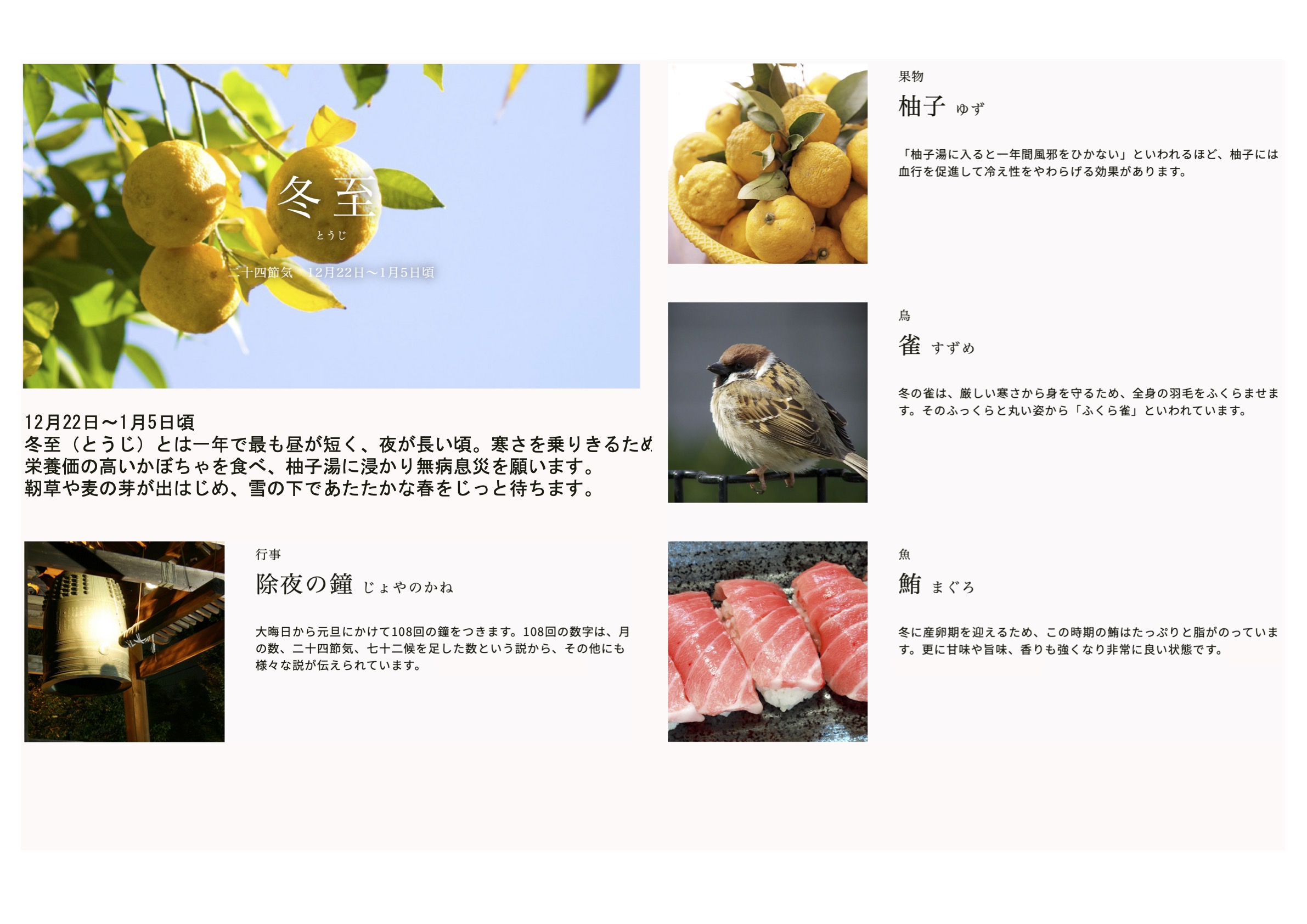 冬至(とうじ)12月22日〜1月5日